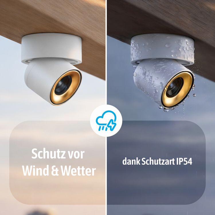 AYONA Aufbauspot schwenkbar IP54 weiß gold inkl. LED LumiFLEX 5W drei einstellbaren Lichtfarben