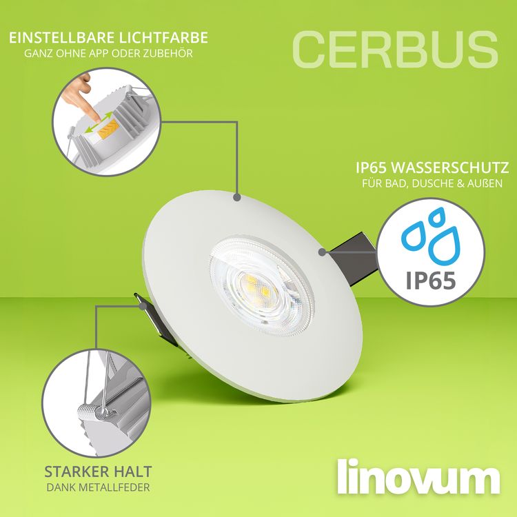 CERBUS LED Einbaustrahler Bad IP65 flach 230V 4W mit drei einstellbaren Lichtfarben 3CCT