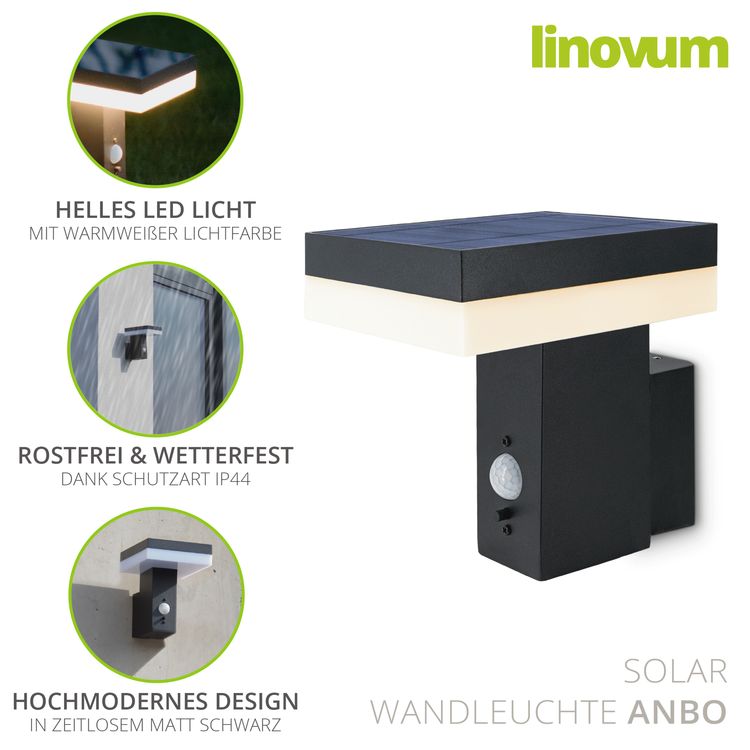 - 1 Stück Solar-Wandleuchte ANBO mit Bewegungsmelder