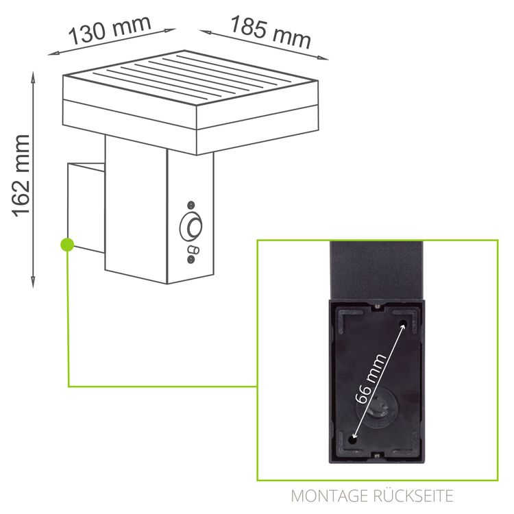 Artikeldetails und technische Daten Außen-Wandleuchte mit Solarmodul