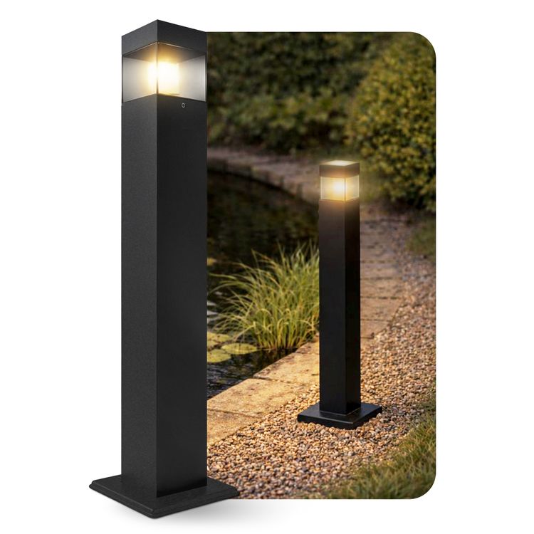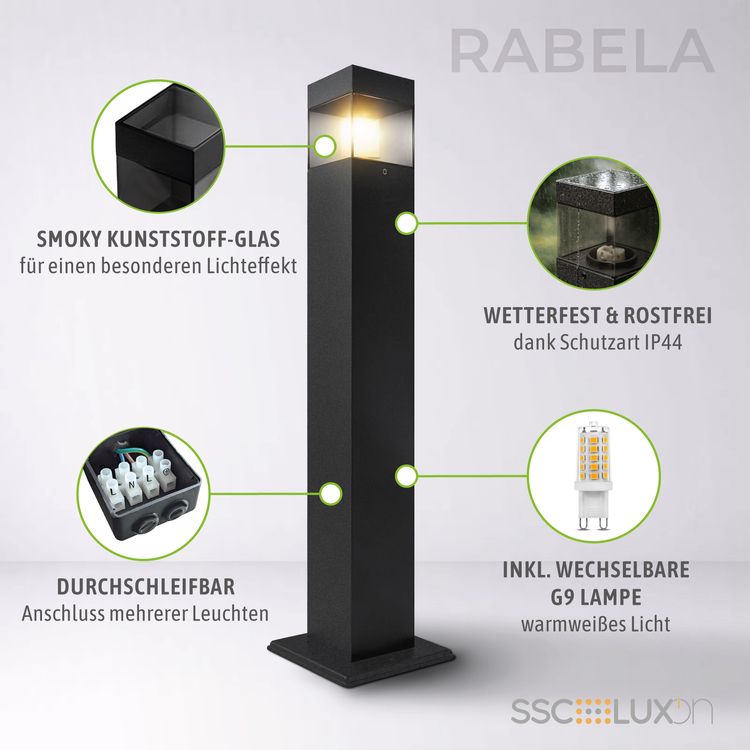 RABELA Pollerleuchte Außen IP44 schwarz Wegeleuchte quadratisch inkl. LED G9 Lampe 3W warmweiß