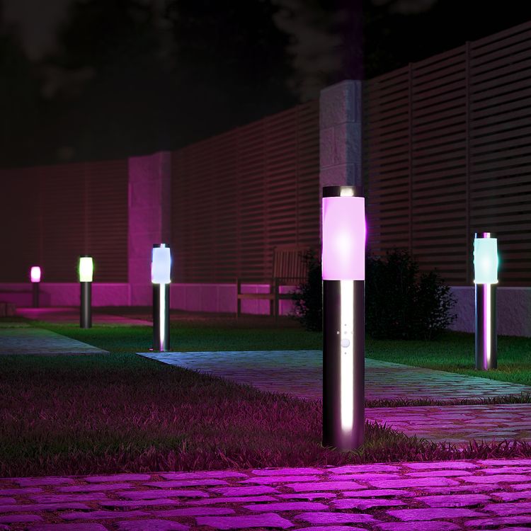 BOSEA-B Edelstahl Wegeleuchte mit Bewegungsmelder IP44 inkl. Smart LED E27 RGBW 3000K-6500K