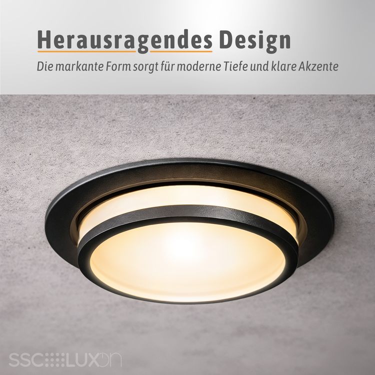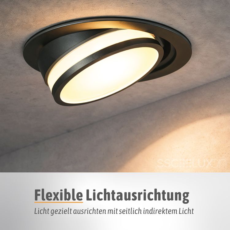 LAGO Design LED Einbauleuchte schwarz rund schwenkbar inkl. LED Modul 4W LumiFLEX Lichtfarbe warm / neutral / kalt 230V