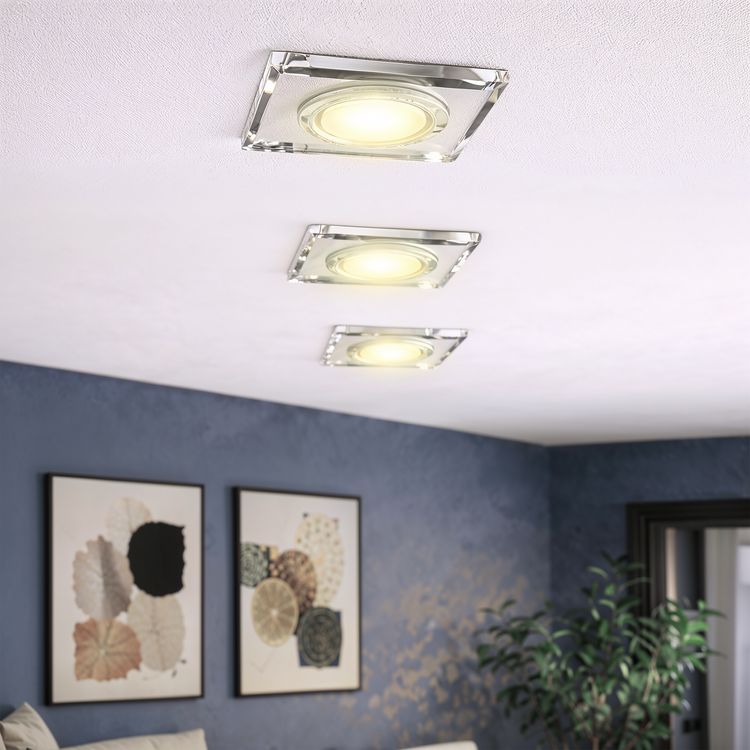 Setzen Sie jetzt neue geschmackvolle Akzente in Ihrer Arbeits- und Wohnumgebung. Dafür eignet sich dieser Einbau Deckenspot mit spiegelndem Klarglas und quadratischer Form optimal. Gerade in einem modern eingerichtetem Zuhause kommt er harmonisch zur Geltung. Die Einbau-Deckenlampe spendet Ihnen jederzeit angenehmes Licht und sorgt somit für eine einladende und gut ausgeleuchtete Atmosphäre in Home-Office, Küche oder Flur.