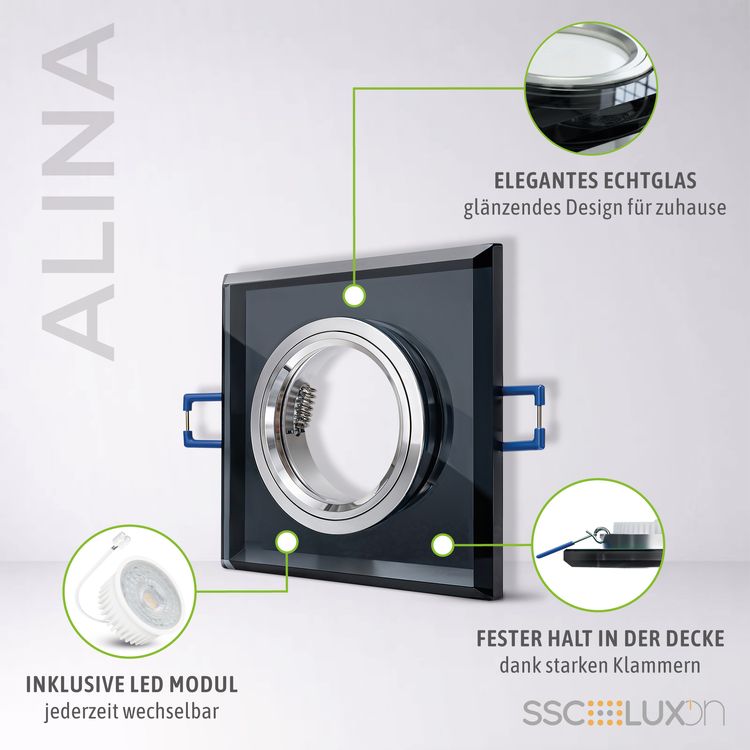 Die Wohn- und Arbeitsumgebung geschmackvoll aufwerten, ein Leichtes mit dem quadratischen Einbaustrahler aus Glas. Mit Licht gestalten und Akzente setzen – kein Problem. Deshalb harmoniert er stilsicher mit jedem modernen Einrichtungsstil. Der Strahler spendet Ihnen angenehmes Licht bei der Arbeit und um sich wohlzufühlen. Optimale Voraussetzungen für Ihren Arbeitsbereich, im Büro, Atelier, Praxis und selbstverständlich für Ihr behagliches Zuhause.