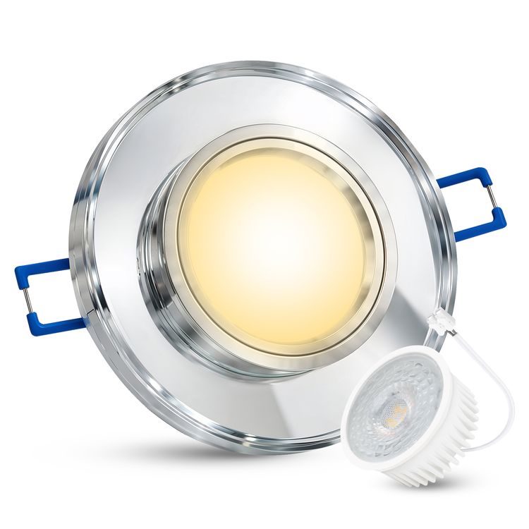 ALINA Einbaustrahler flach aus Glas rund klar spiegelnd LED-Modul 6W warmweiß 230V dimmbar