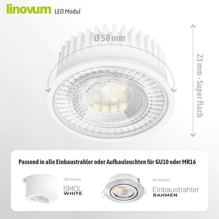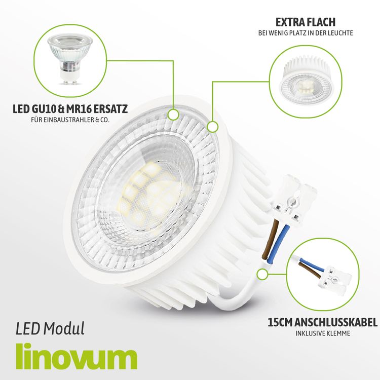 Das linovum LED Modul vereint moderne Technologie mit einem angenehmen warmweißen Licht (3000 Kelvin), das für eine gemütliche Atmosphäre sorgt.