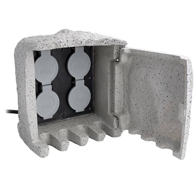 Gartensteckdose 4-fach in dekorativer Steinoptik für Außen IP44 - Kabel 5m