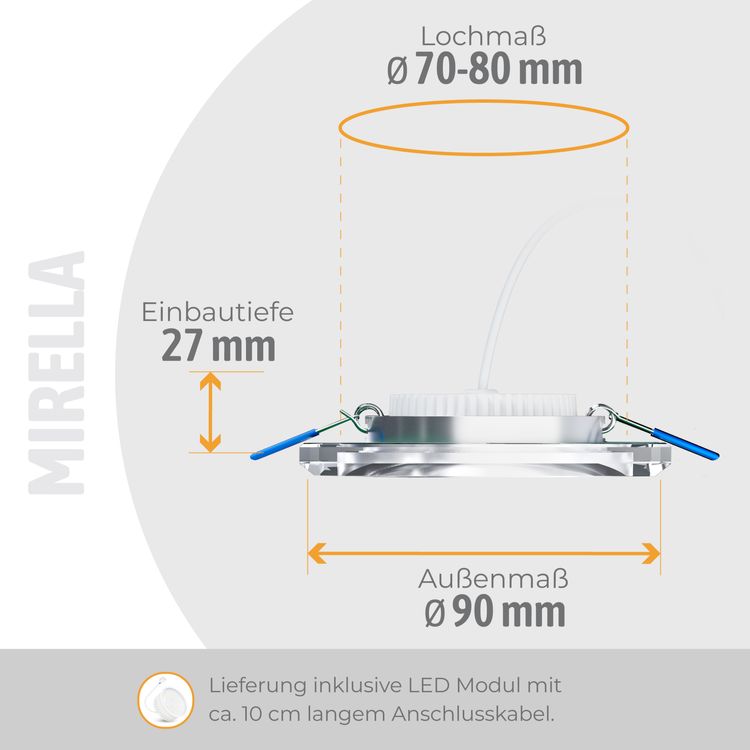 Die Montage der Glas-Einbauleuchte ist zügig erledigt und unkompliziert. Der Spot wird mit einer LED-Lampe inklusive Anschlussleitung für den Direktanschluss an 230 Volt geliefert – kein zusätzlicher Trafo notwendig. Der Leuchtmittelwechsel gelingt einfach und schnell.