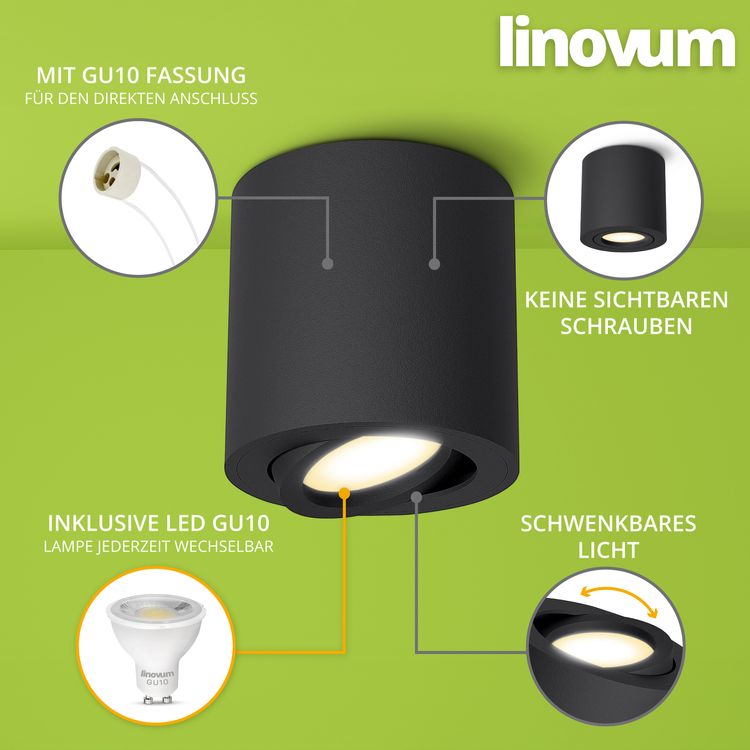 - Integrierte GU10-Fassung für den direkten Anschluss an 230 Volt