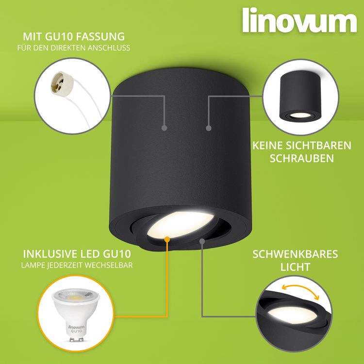 - Integrierte GU10-Fassung aus Keramik für den direkten Anschluss an 230 Volt