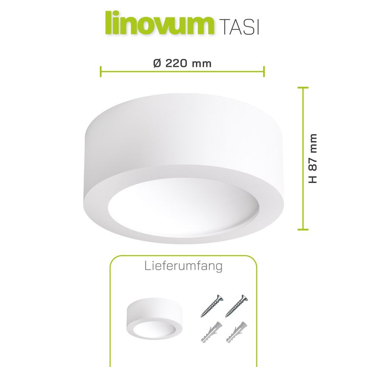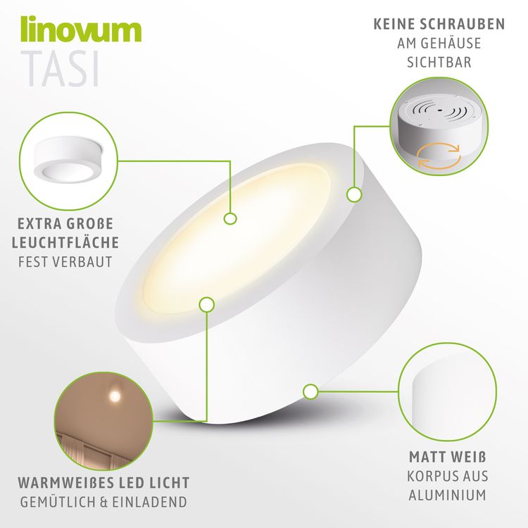 LED Decken Aufbauleuchte TASI rund matt weiß mit großer Lichtfläche warmweiß 17W