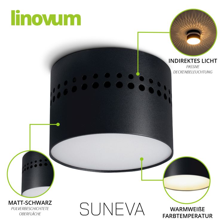 Die LED-Aufbaulampe in mattem Schwarz verbindet funktionales Design mit hochwertiger Verarbeitung. Die flache Bauform ermöglicht eine dezente Deckenbeleuchtung und passt sich unterschiedlichen Wohnstilen an. Gefertigt aus Aluminium und ausgestattet mit langlebiger LED-Technik überzeugt die SUNEVA Aufputzleuchte durch Qualität und zeitlose Optik.