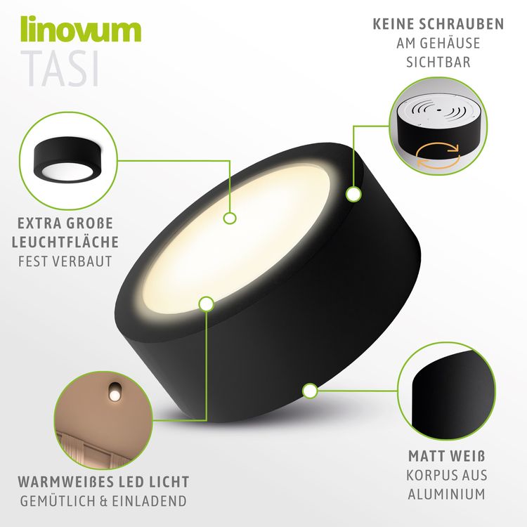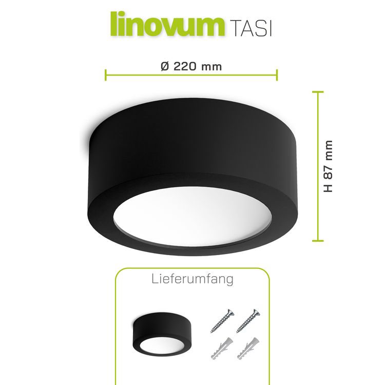 TASI LED Deckenlampe rund schwarz matt warmweiss 17W mit gewölbter Leuchtfläche