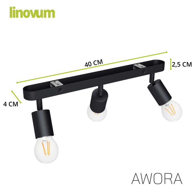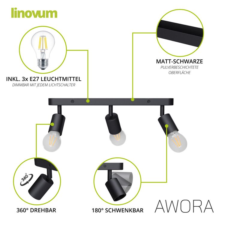 AWORA Deckenleuchte 3 flammig schwarz schwenkbar & drehbar mit fourSTEP LED E27
