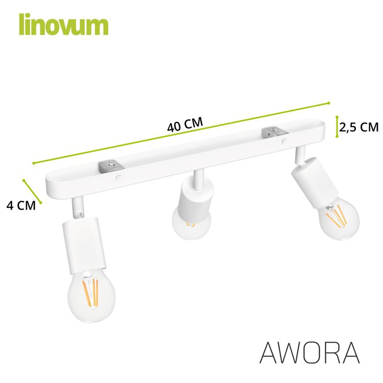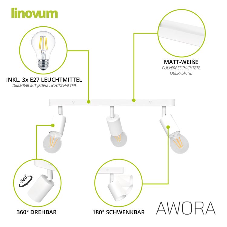 AWORA schlichte Deckenlampe 3 flammig weiss schwenkbar mit 3x E27 fourSTEP LEDs