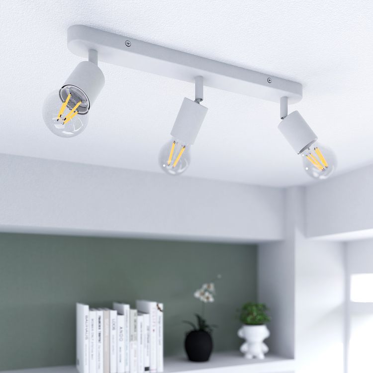 Die weiße, dreiflammige Deckenleuchte verbindet ein reduziertes Design mit moderner Beleuchtungstechnik und eignet sich ideal für nahezu jeden Wohnraum. Klare Linien und das schlichte Weiß sorgen für eine zeitlose Optik, die sich harmonisch in klassische, moderne oder vintage-inspirierte Einrichtungsstile einfügt. Jeder Spot ist einzeln schwenk- und drehbar, sodass sich die Lichtverteilung flexibel an den Raum anpassen lässt.