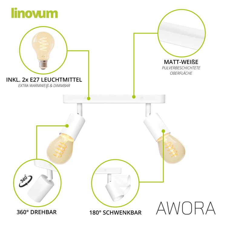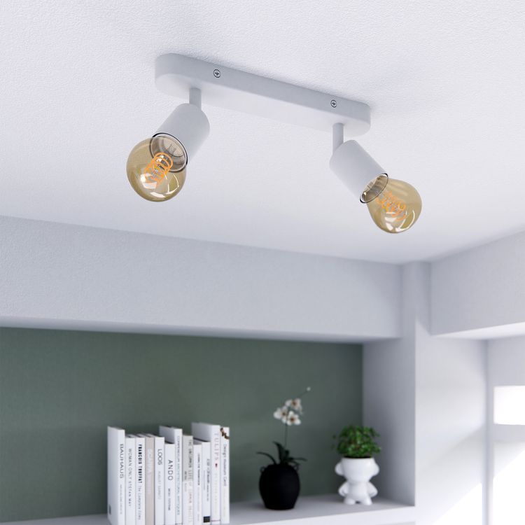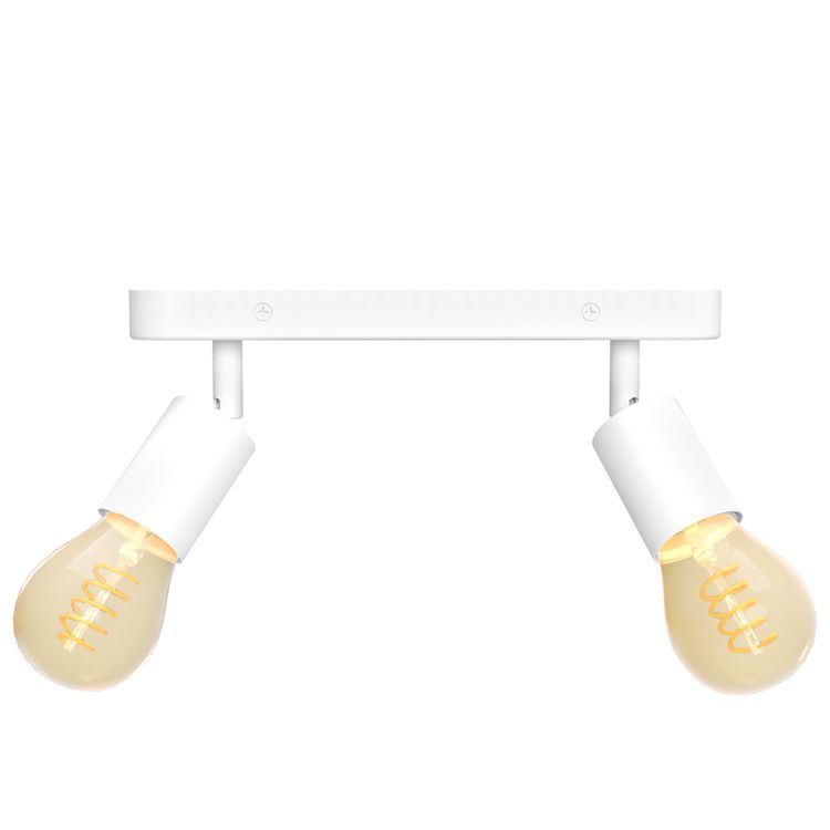 Die weiße, zweiflammige Deckenleuchte verbindet puristisches Design mit moderner Beleuchtungstechnik und eignet sich ideal für verschiedenste Wohnbereiche. Klare Linien und das zeitlose Weiß passen zu klassischen wie auch modernen oder vintage-inspirierten Einrichtungsstilen. Jeder Spot ist einzeln schwenk- und drehbar, sodass sich die Lichtverteilung flexibel an den Raum anpassen lässt.