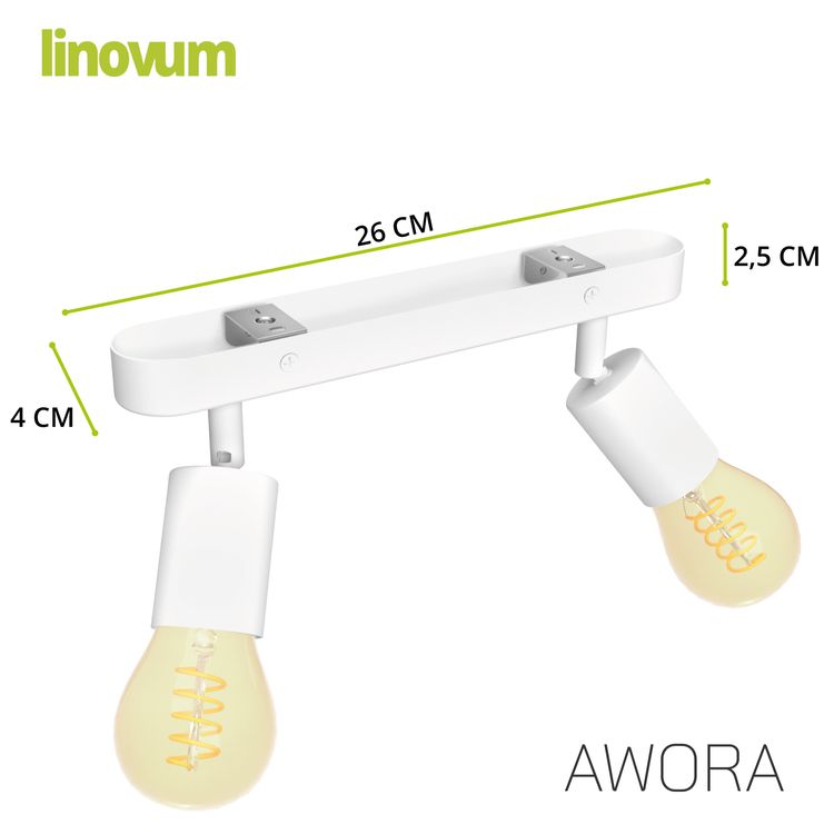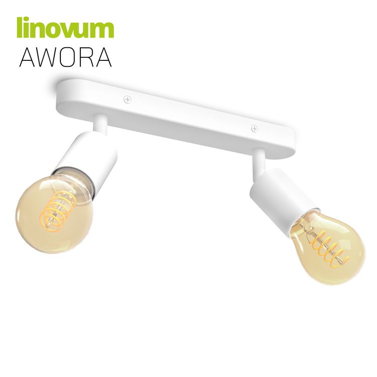AWORA Wohnzimmerlampe 2 flammig weiss inkl. 2x Retro E27 Filament Globe LEDs 4W