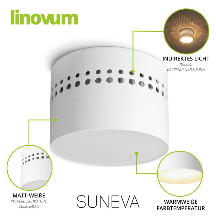 SUNEVA flache Aufbauleuchte weiß rund mit indirektem LED Licht warmweiß 230V 8W