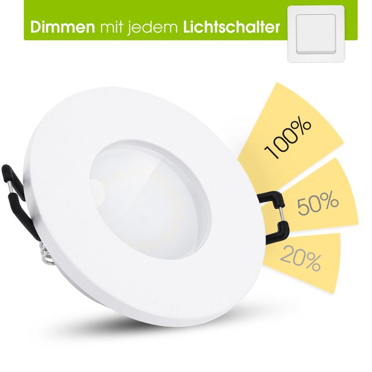 fourSTEP LED Einbaustrahler Bad IP65 "Dimmen ohne Dimmer" warmweiß GU10 5W 230V - weiß rund