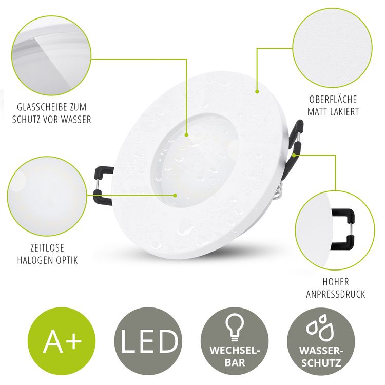 - Leuchtmittel durch Dichtungsringe optimal vor Feuchtigkeit geschützt (IP65)