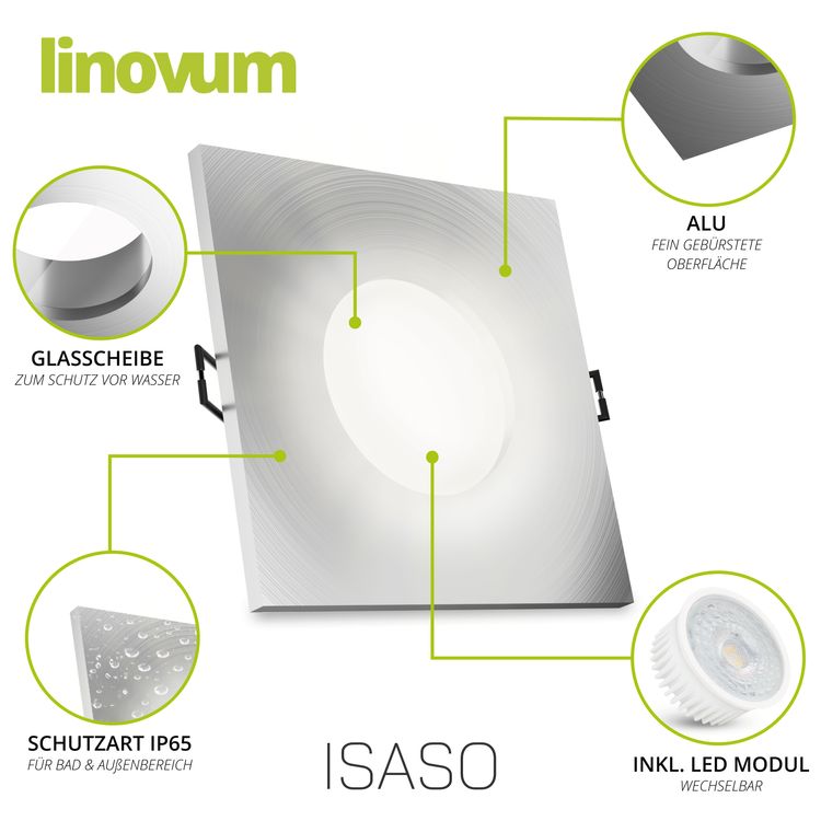 ISASO Einbauleuchte IP65 Bad Alu gebürstet eckig mit LED Modul 4W neutralweiß