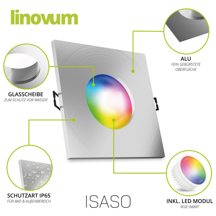 ISASO Einbauleuchte IP65 Bad Alu gebürstet eckig mit Smart Modul 4W RGB CCT WLAN