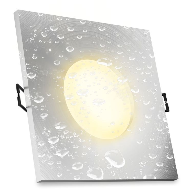 Das Leuchtmittel ist durch integrierte Dichtungsringe zuverlässig vor Feuchtigkeit geschützt. Starke Halteklammern sorgen für einen hohen Anpressdruck und einen sicheren Sitz in der Decke. Eine transparente Echtglasscheibe bietet zusätzlichen Schutz vor Wassertropfen. Mit der Schutzart IP65 ist der Einbaustrahler ideal für Bad, Küche, den Eingangsbereich oder den Einsatz unter einem Vordach geeignet.