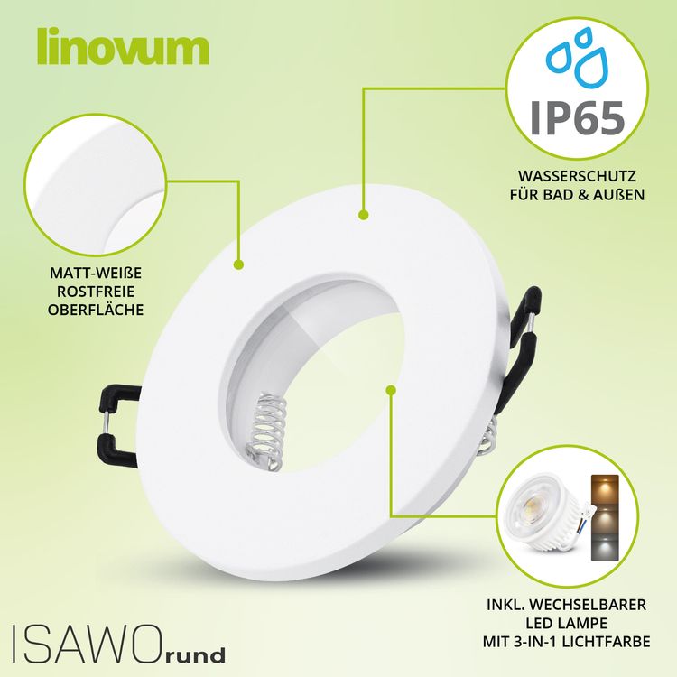 ISAWO Einbaustrahler Flach IP65 rund weiß mit LumiFLEX 4W Lampe drei Lichtfarben Spot