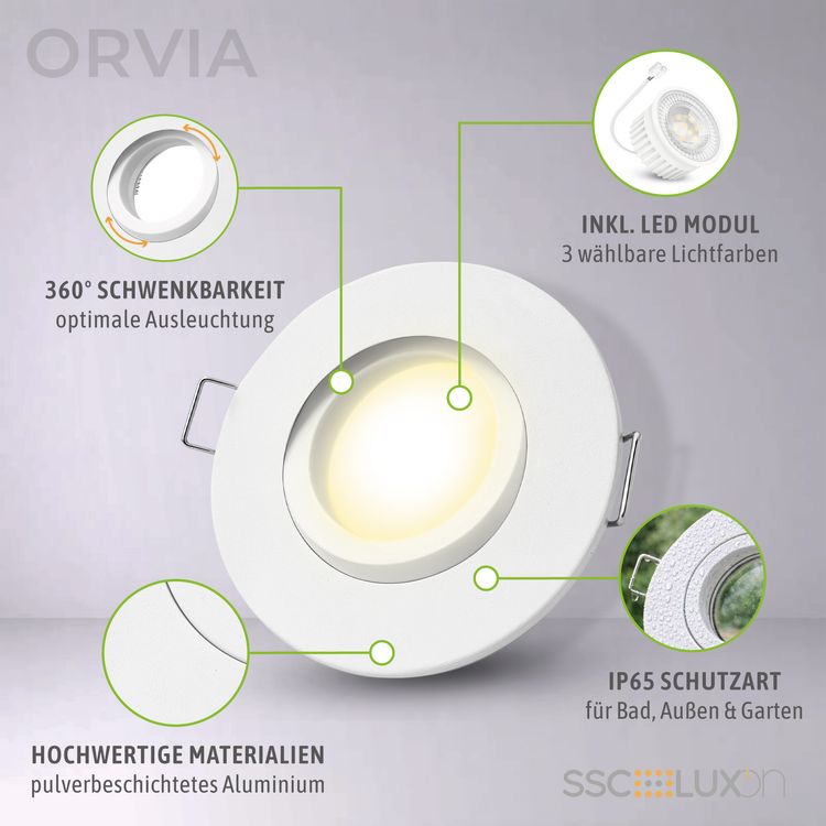 ORVIA Einbauspot Vollschwenkbar IP65 weiß inkl. LumiFLEX Birne 4W 3 Lichtfarben warm neutral kalt