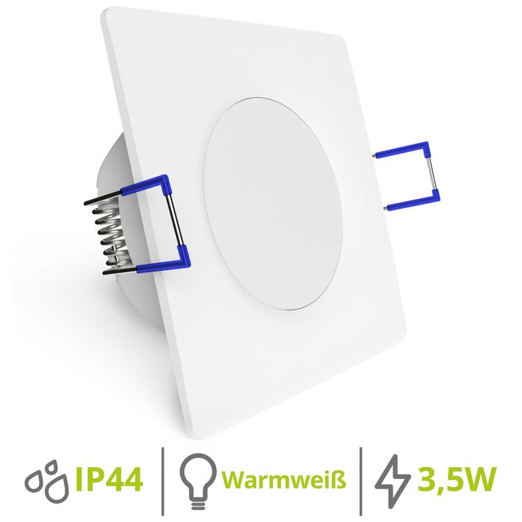 WEEVO extra flacher LED Einbauspot eckig weiß 2700K 3,5W 230V Bad & Außen IP44