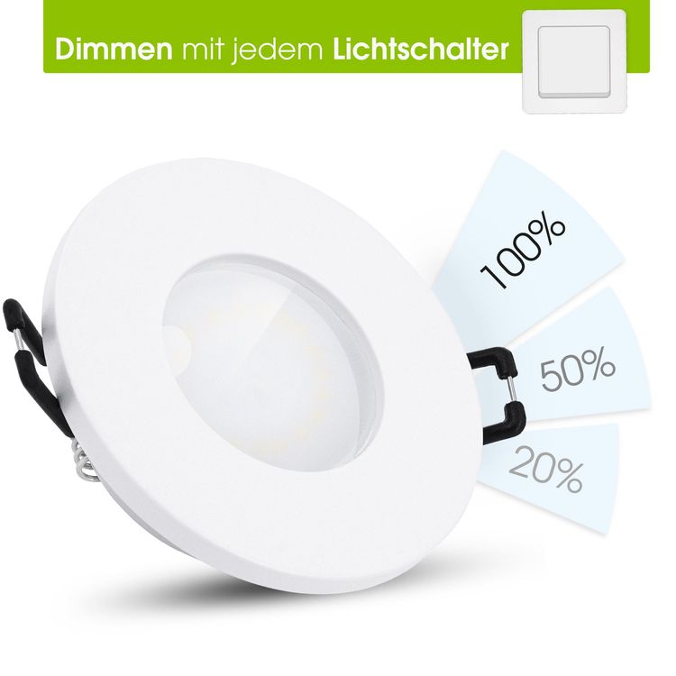 - Helligkeit über den normalen Lichtschalter in 4 Stufen regelbar: 100 %, 50 %, 20 % und Aus