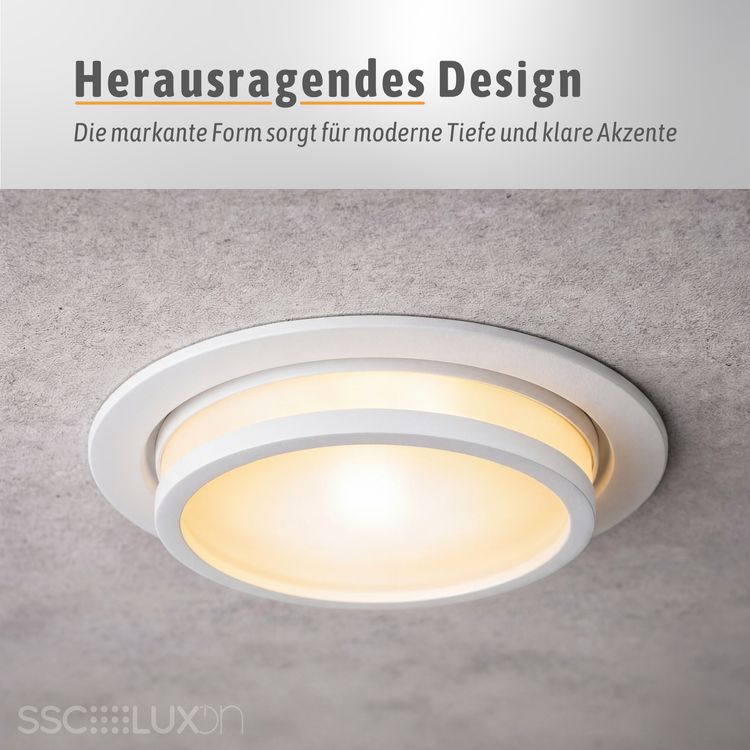 Das mitgelieferte LumiFLEX LED Leuchtmittel mit 6W ist dimmbar und ermöglicht Ihnen eine flexible Anpassung der Helligkeit ganz nach Ihren Bedürfnissen. Zusätzlich können Sie die Lichtfarbe individuell wählen – von warmweiß für eine gemütliche Stimmung über neutralweiß für klare Sicht bis hin zu tageslichtweiß für konzentriertes Arbeiten. Der Deckeneinbaustrahler besteht aus robustem Aluminium und ist mit einem milchigen Acrylglas ausgestattet, das für eine blendfreie und gleichmäßige Lichtverteilung sorgt.
