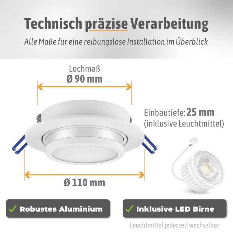 LAGO Einbaustrahler weiß schwenkbar inkl. LED 2W Lampe warmweiß Einbauspot