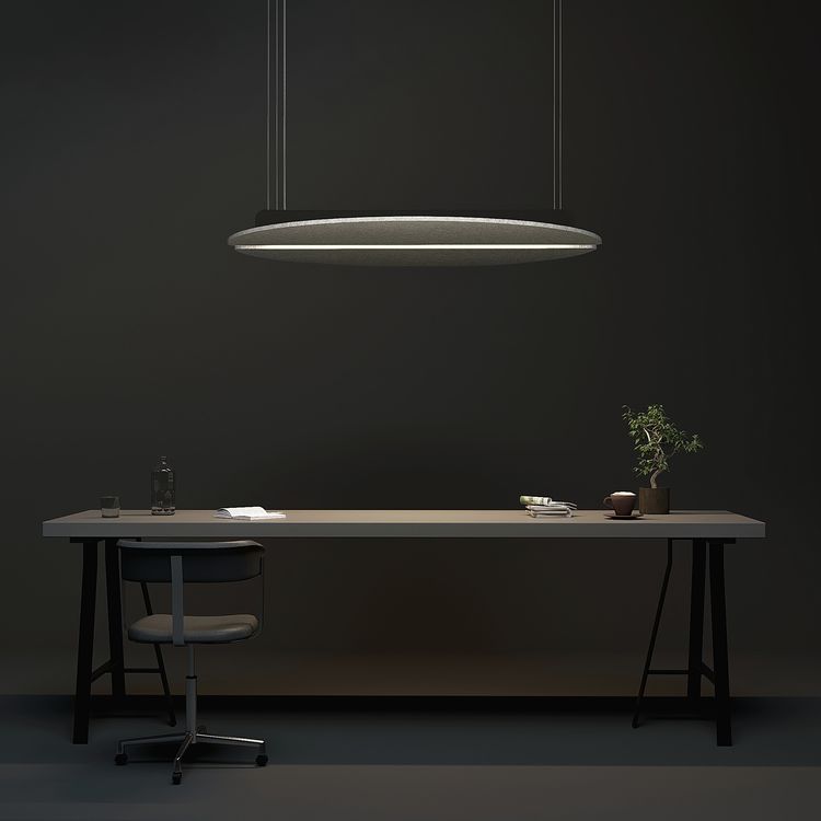 Die Deckenleuchte TAURA XXL ist mehr als nur eine Lichtquelle - sie ist eine beeindruckende Kombination aus brillantem Licht, innovativem Design und schallhämmendem Materialien für ein konzentriertes und kreatives Arbeitsumfeld.