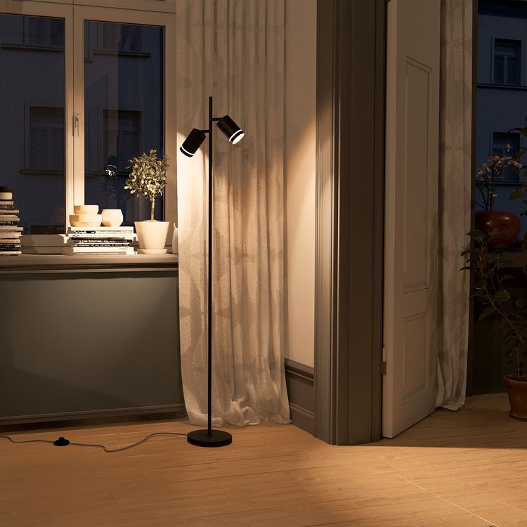 TAVIRA Stehlampe schwarz 2-flammig mit Fußschalter inkl. 2x GU10 LED warmweiß 2W