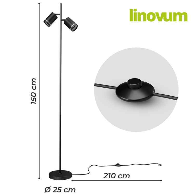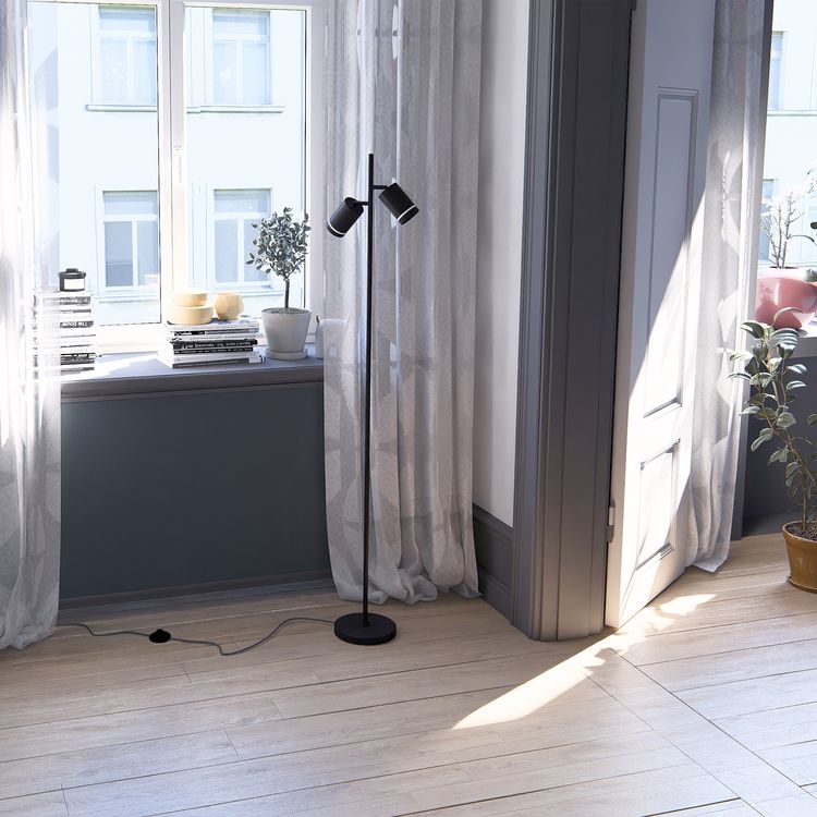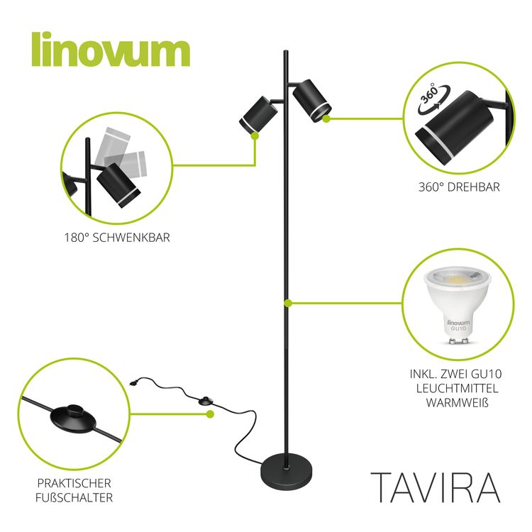 TAVIRA Stehlampe schwarz 2-flammig mit Fußschalter inkl. 2x GU10 LEDs LumiFLEX Lichtfarbe warm / neutral / kalt 6W