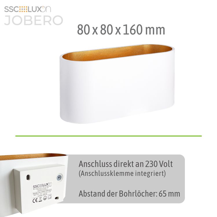 Die JOBERO Wandlampe in Weiß-Gold vereint modernes Design mit wohnlicher Atmosphäre. Durch das markante Up & Down Licht entstehen dekorative Effekte, die Ihre Wände stilvoll inszenieren. Die goldfarbene Innenseite reflektiert das warmweiße Licht besonders angenehm und sorgt für eine behagliche Stimmung. So wird jeder Raum nicht nur beleuchtet, sondern in seiner Wirkung aufgewertet.