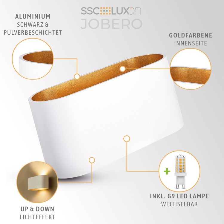 JOBERO Wandlampe Wandstrahler Up & Down inkl. 3W LED G9 Birne dimmbar warmweiß