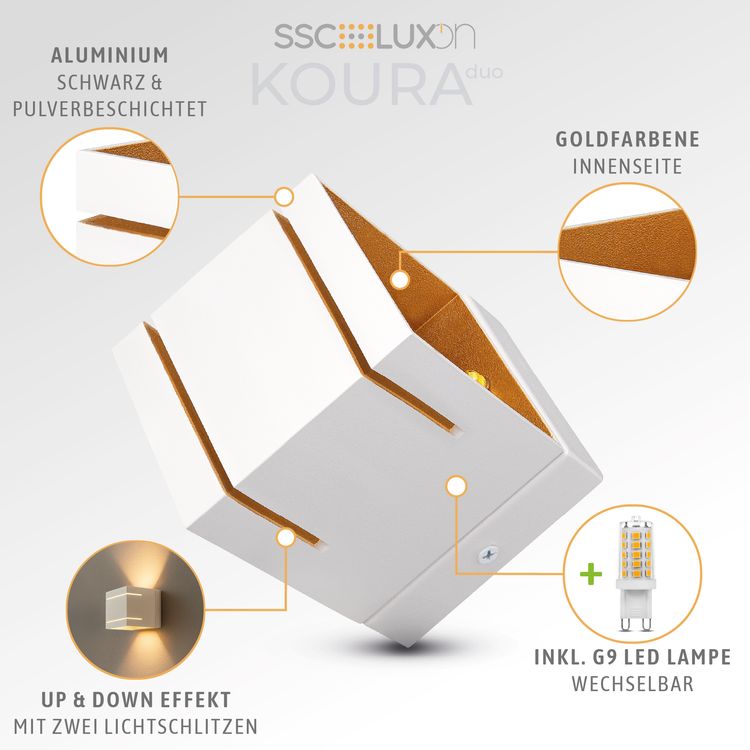 KOURA DUO Wandlampe Innen weiß Strahler Up & Down mit LED G9 Lampe dimmbar 3W warmweiß