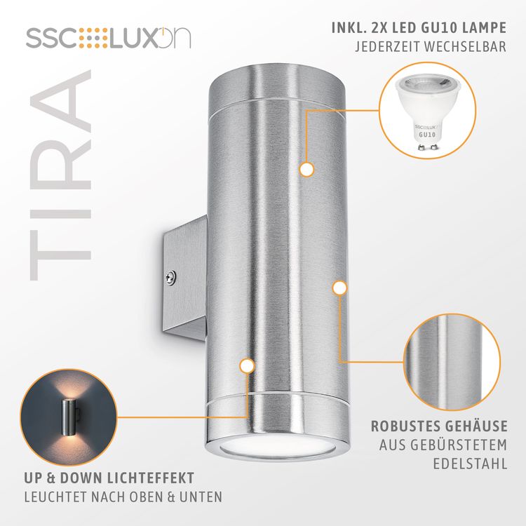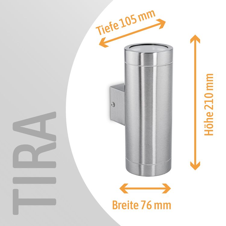 Die TIRA Edelstahl Wandleuchte ist eine vielseitig, durchdachte Wandbeleuchtung mit hochwertiger Verarbeitung im zeitlosem Edelstahl-Design.
