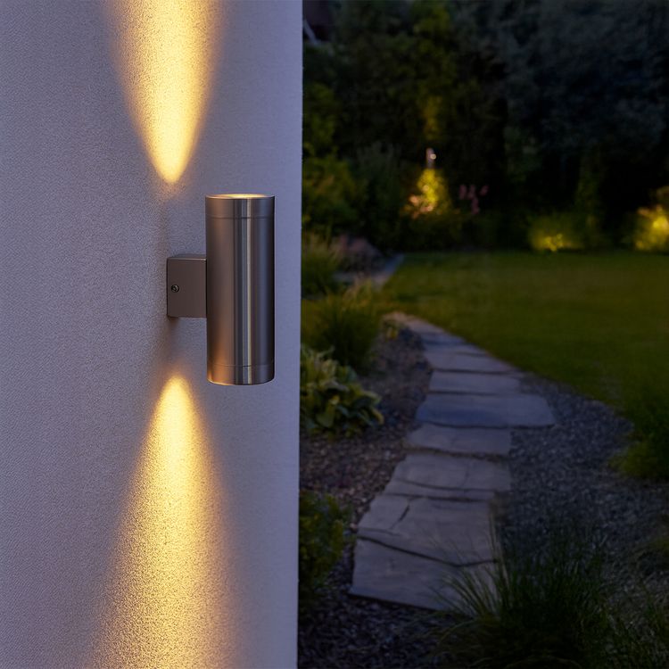 LED Wandleuchte TIRA Edelstahl Up & Down IP44 Strahler inkl. 2x LED GU10 3W neutralweiß 230V