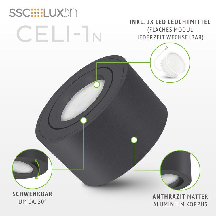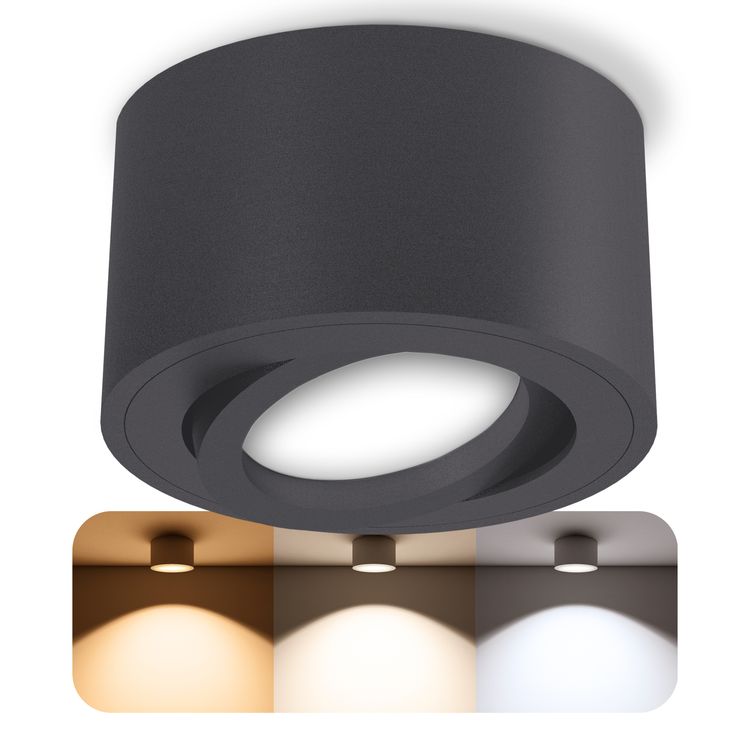 CELI-1N Decken Aufbauspot flach schwenkbar anthrazit mit LED Modul 4W drei einstellbaren Lichtfarben 3CCT