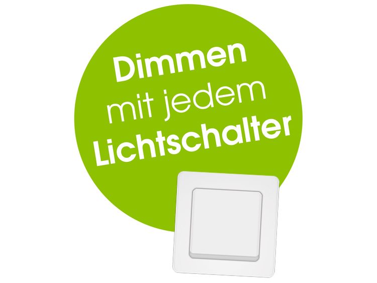 - Dimmung über jeden Lichtschalter in 4 Stufen: 100 % > 50 % > 10 % > Aus