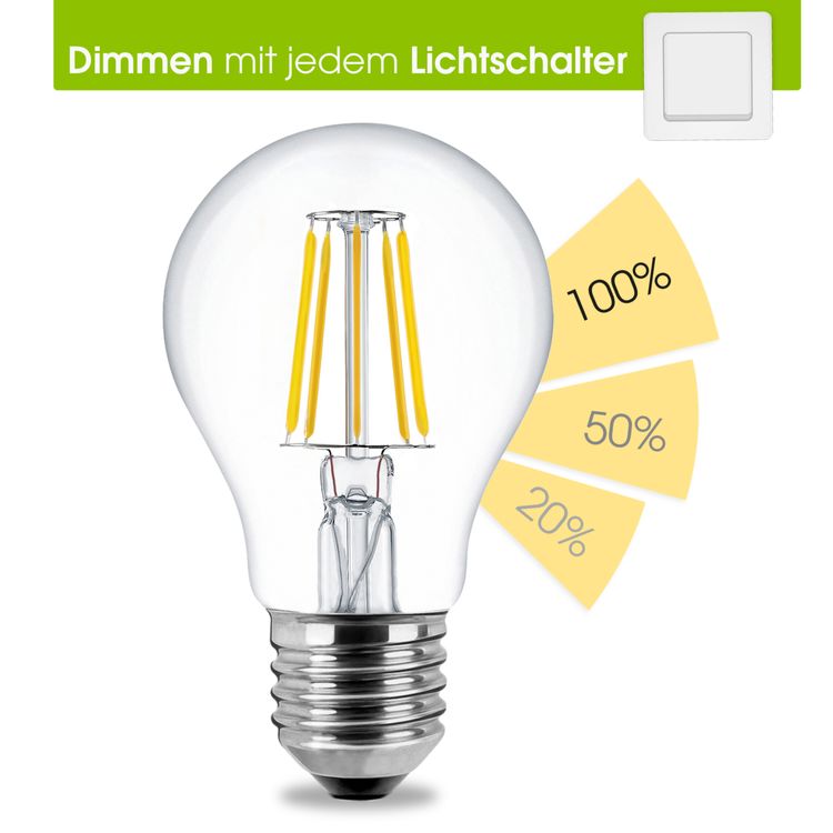 fourSTEP LED E27 Filament Birne mit 4-Schritt-Dimmung 5W warmweiß