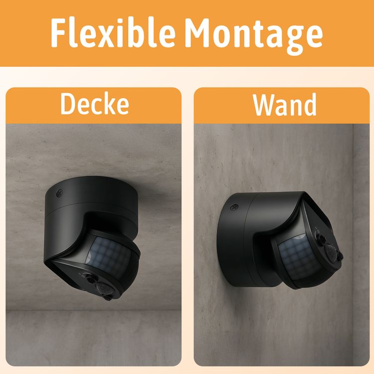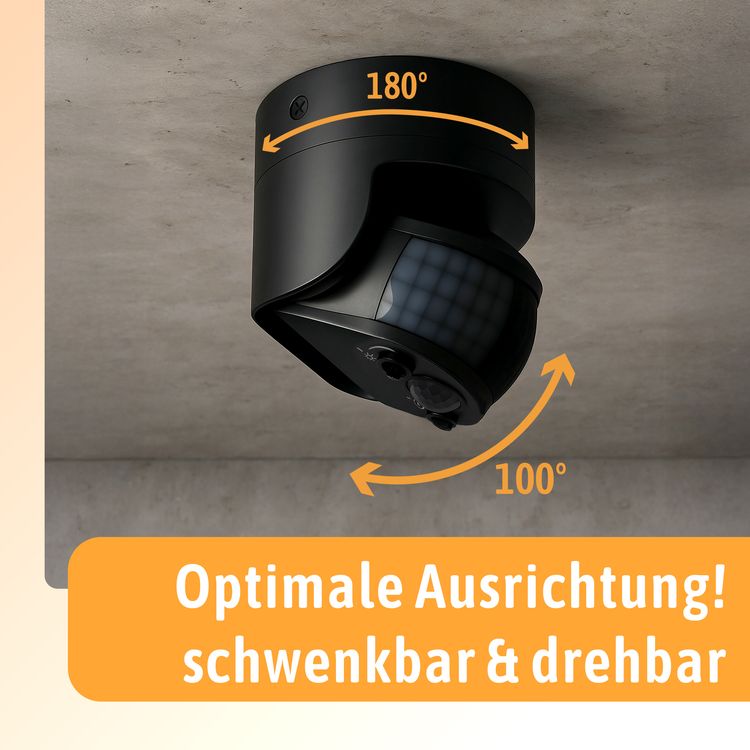 Durch seine schwenkbare Konstruktion lässt sich der LOXIR gezielt auf den Bereich ausrichten, der für Sie besonders relevant ist. Dadurch minimieren Sie unnötige Auslösungen und stellen sicher, dass Bewegungen zuverlässig erkannt werden. Dank IP54 ist der Sensor wetterfest und bleibt auch bei Regen, Kälte oder Hitze einsatzbereit. Mit der einstellbaren Leuchtdauer zwischen 10 Sekunden und 15 Minuten passen Sie das Verhalten optimal an Ihren Alltag an – ganz ohne technisches Vorwissen.