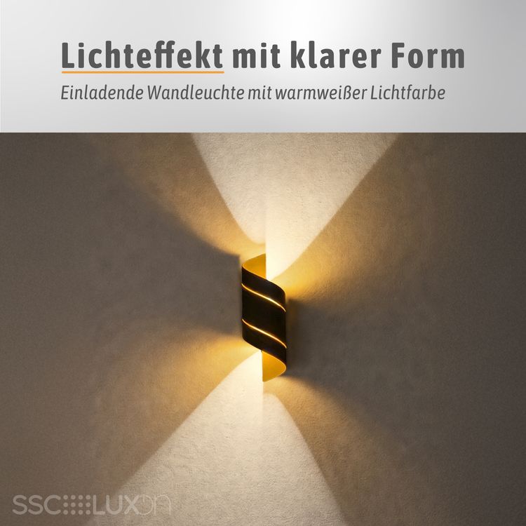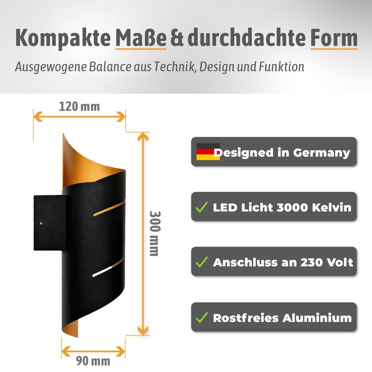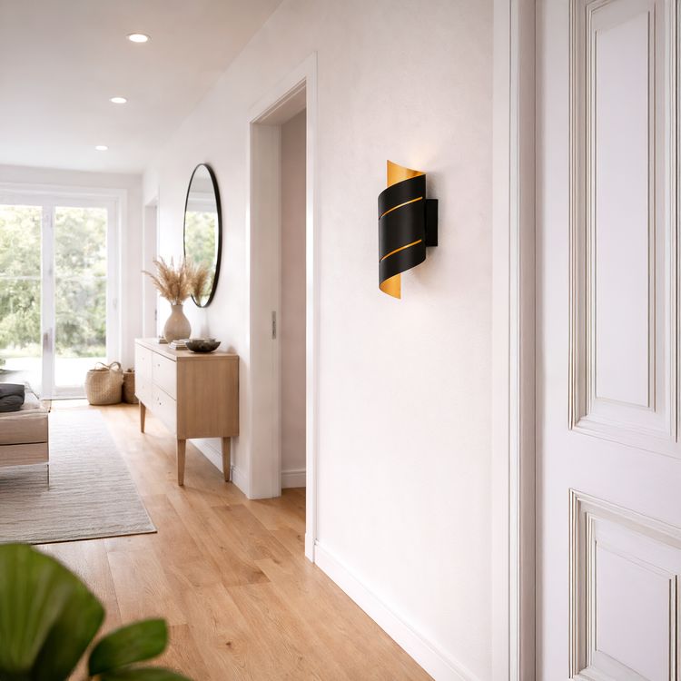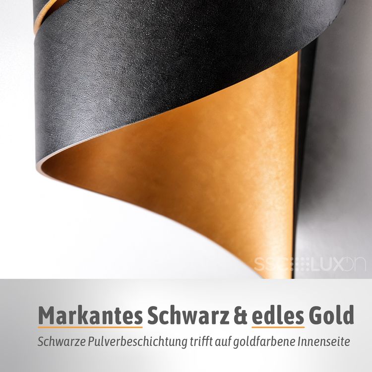 Die REVIA Wandleuchte vereint modernes Design mit exklusiver Lichtwirkung. Außen in elegantem Schwarz gehalten und innen mit einer goldenen Oberfläche veredelt, schafft sie ein stilvolles Highlight in jedem Raum. Besonders das raffinierte Twist-Design mit zwei Lichtschlitzen macht diese Leuchte zu etwas Besonderem. Das warmweiße Licht wird nach oben und unten ausgestrahlt und setzt Ihre Wände in Szene. Ob für Innen oder Außenbereiche – die REVIA ist mehr als nur eine Leuchte, sie ist ein Gestaltungselement für stilvolle Wohn- und Lebensräume.