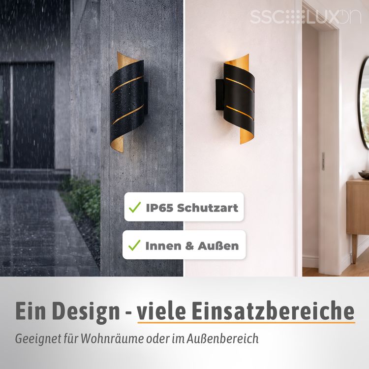 LED Wandleuchte REVIA schwarz gold für Außen & Innen IP65 warmweiß Up & Down