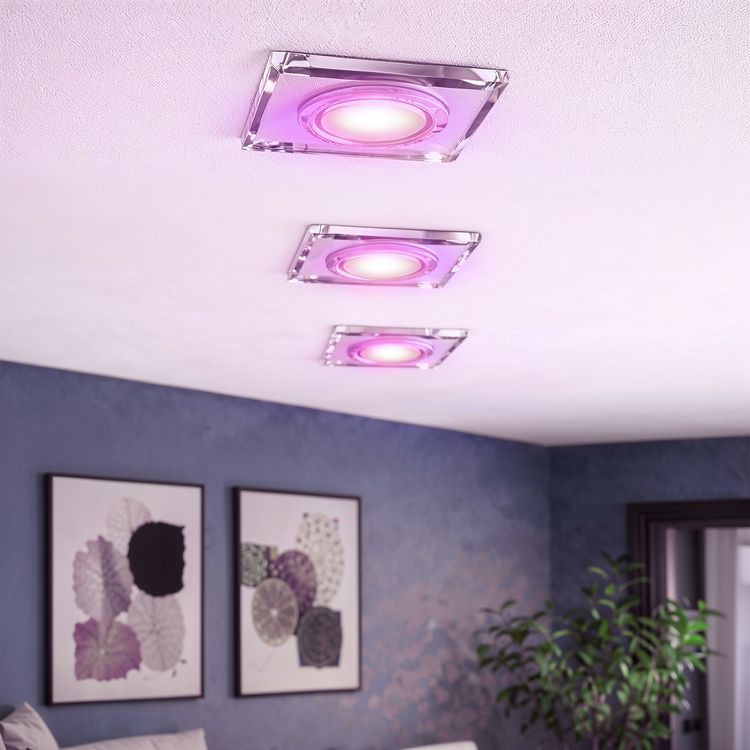 Glas Einbaustrahler MIRELLA flach, eckig & schwenkbar inkl. WiFi LED RGB Modul 4W dimmbar